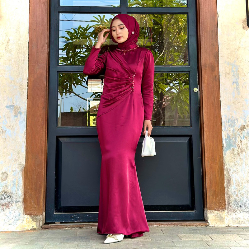 Kharisma Dress (Ready Stok) Satin Silk Dress Outfit Kondangan Lamaran Wisuda Dress Mermaid Silk Dress Satin Dress Gaun B