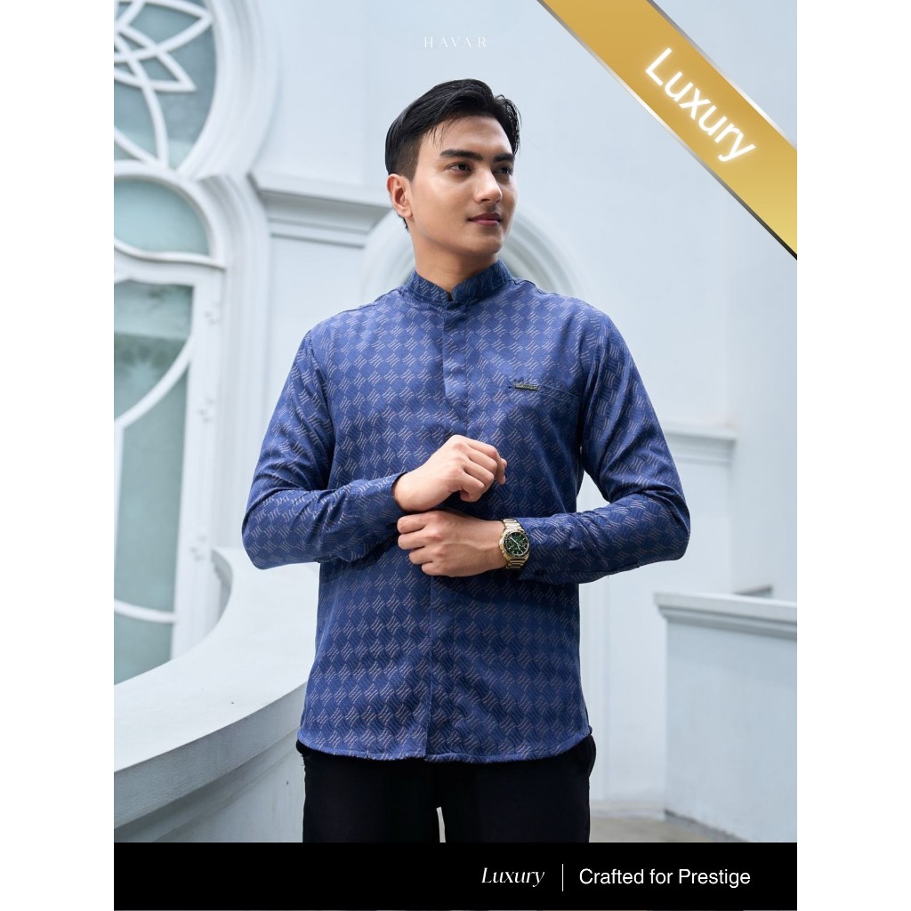 HAVAR Omar Navy Kemeja Koko Muslim Premium Slimfit Lengan Panjang