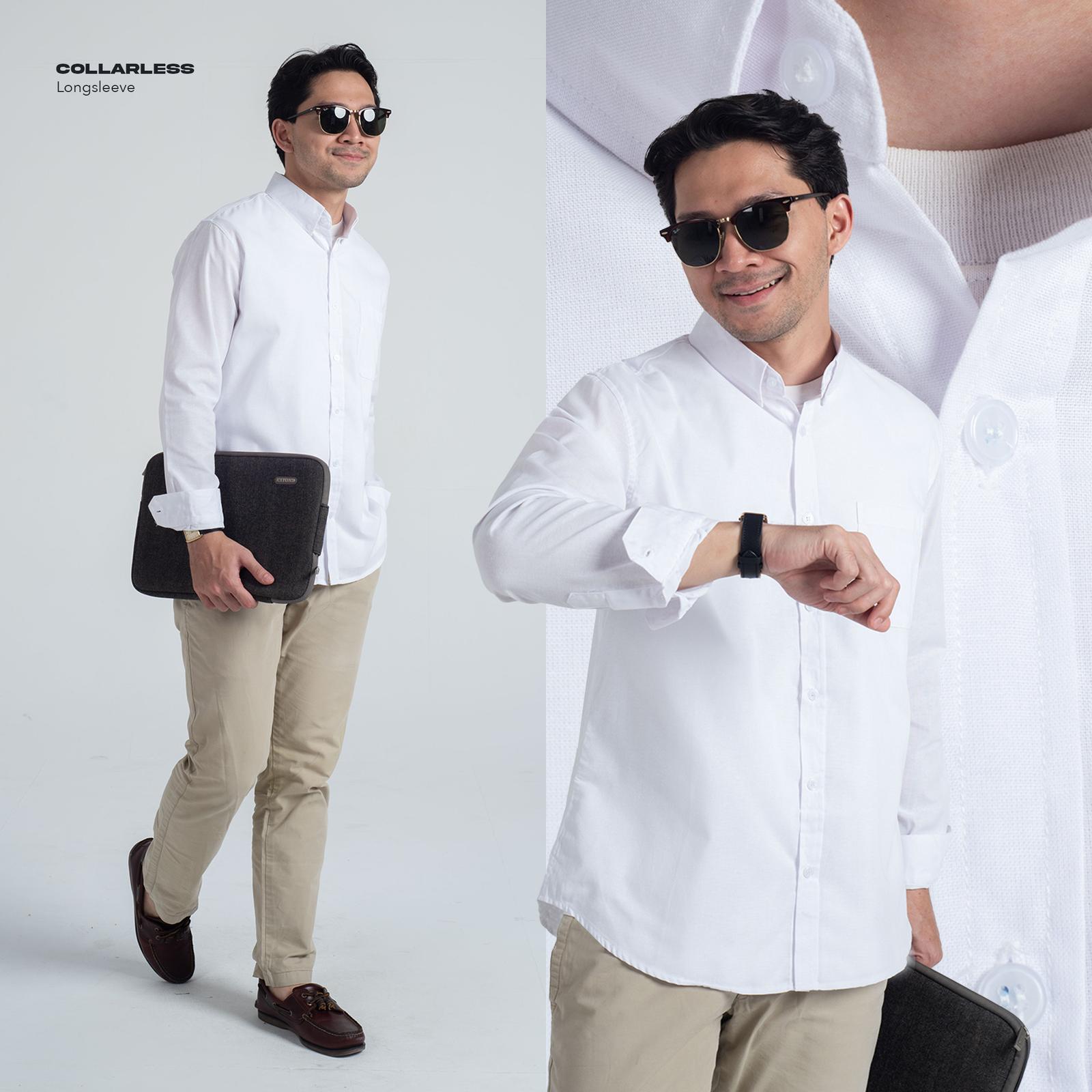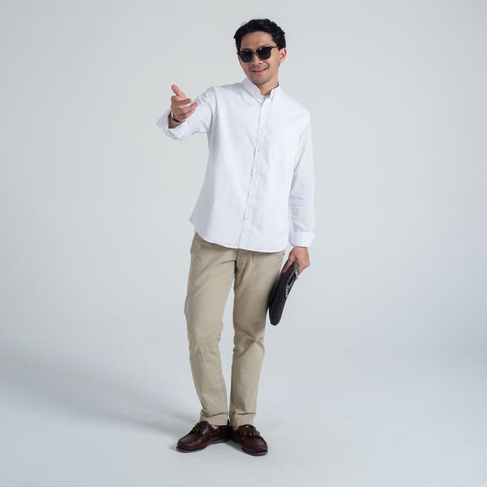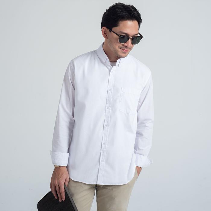 Kemeja Polos Pria Oxford WOODCUTTER Basic Shirt - White Putih Longsleeve Lengan Panjang