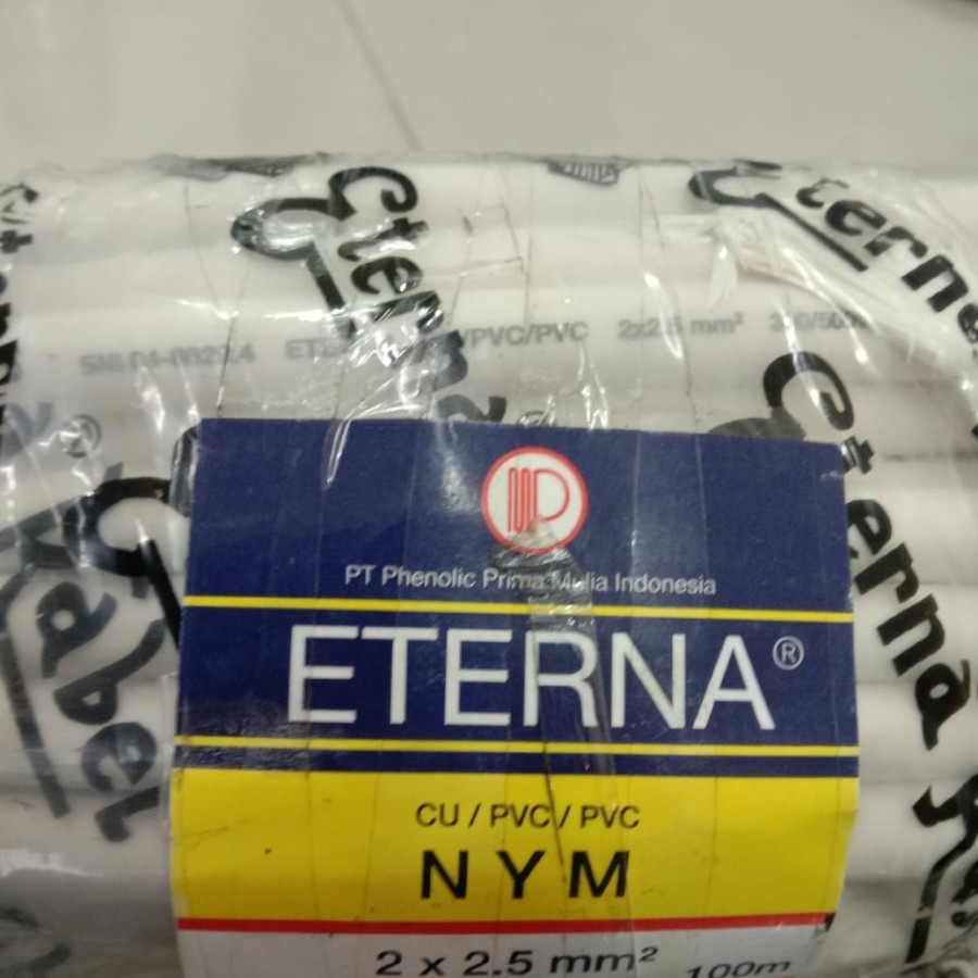 [100 meter] Kabel Eterna NYM 2x2,5 100m 2x2.5 putih tunggal kawat