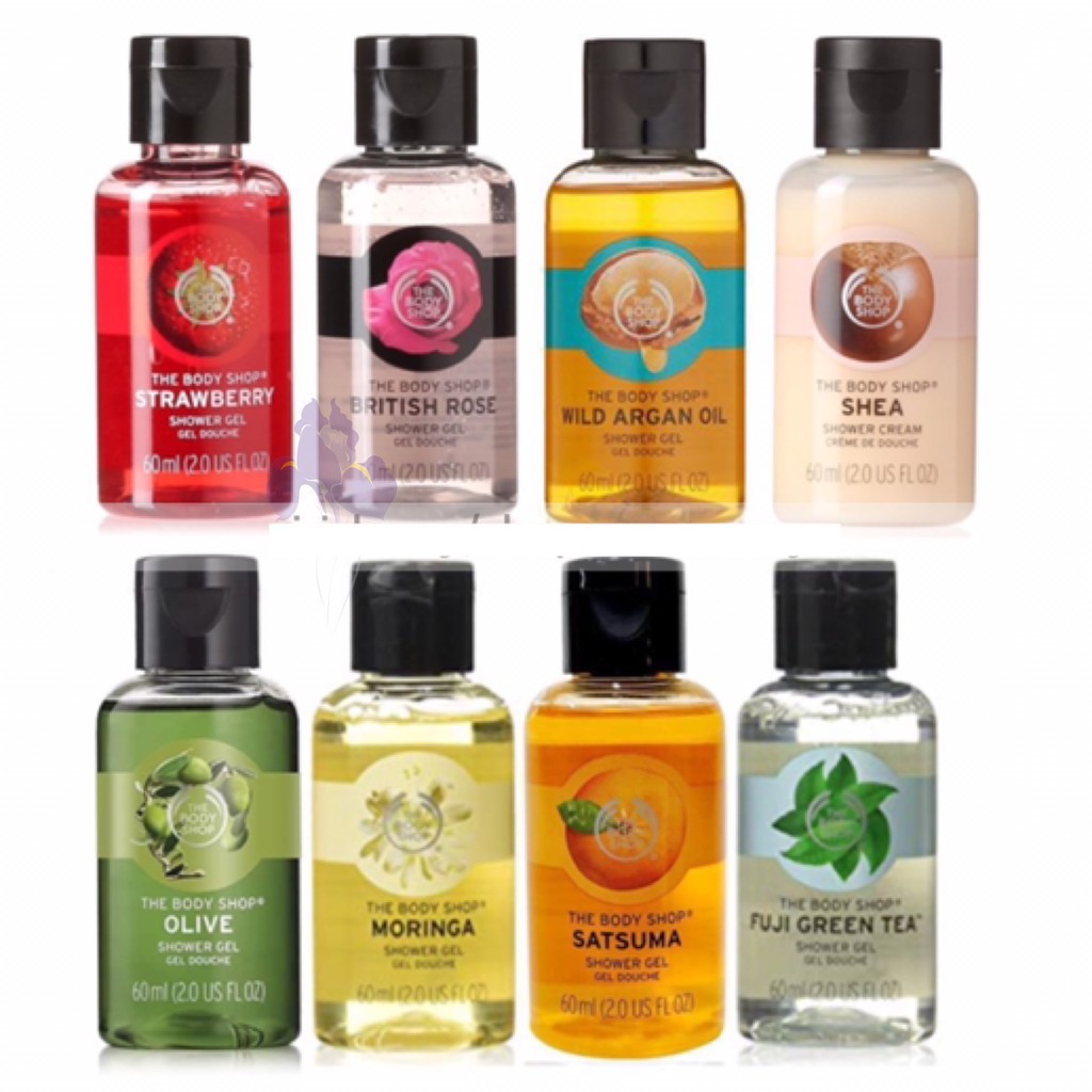 Shower Gel 60Ml The Body Shop Strawberry Moringa British Almond Whitemusk Blackmusk
