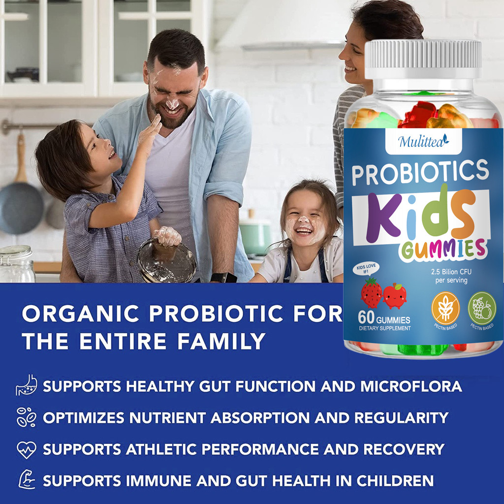 Mulittea Kids Gummies Probiotic Veggie Fiber Vitamin C For Tes Digestive Balance Reduce Bloating And Constipation 60Pcs
