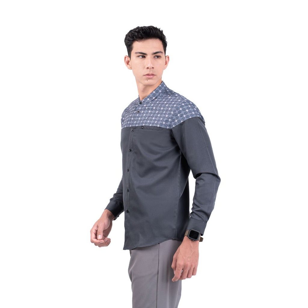 Fadkhera Aufan Dark Grey | Baju Koko Pria Modern Premium | Atasan Muslim Lengan Panjang