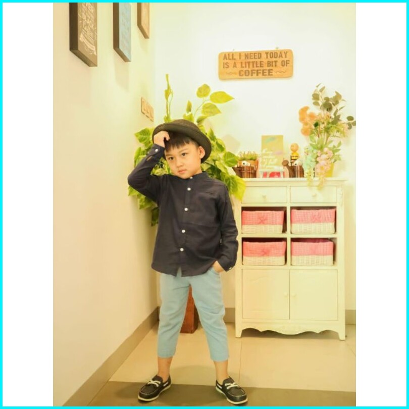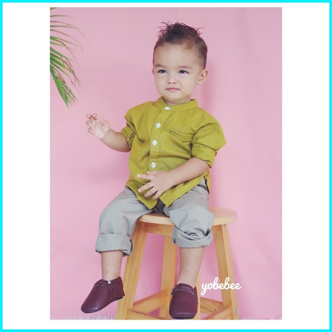 Yobebee Kemeja Linen Anak Laki Laki Tangan Panjang Usia 2 3 4 5 6 Tahun Baju Atasan Kids Polos Model Casual Formal Koko