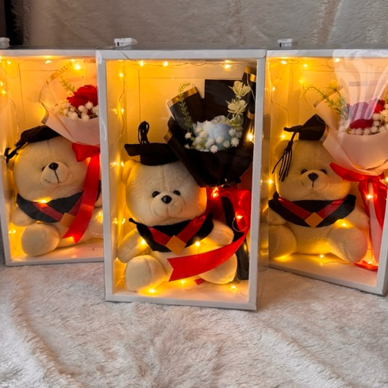 [ - URGENT ORDER] | GIFT BOX HAMPERS KADO WISUDA SIMPLE / GRADUATION / KADO ULANG TAHUN FREE BONEKA DAN LAMPU LED | ARTIFICIAL FLOWERS