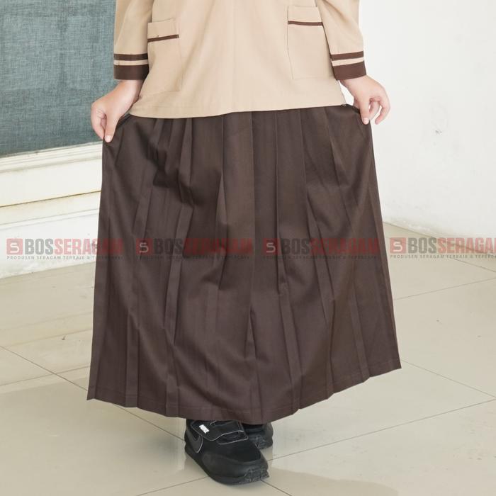 BOS SERAGAM ROK PRAMUKA SD PANJANG REMPEL PEREMPUAN LIPIT ATAS COKLAT COKELAT PLISKET - 2