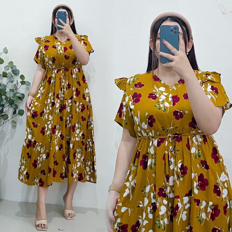 Missdaster - Kejora Dress Ruffle Rayon Motif Busui Dan Bumil