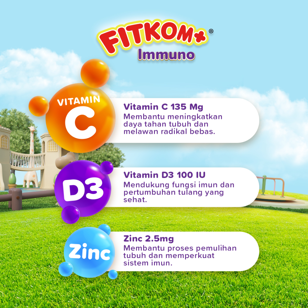 Fitkom+ Immuno Tablet Hisap Suplemen Membantu Jaga Daya Tahan Tubuh Sumber Vitamin, Tinggi Vitamin C, Vitamin D3-100 Iu