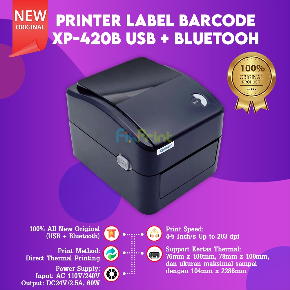 Fixprint Printer Thermal Xprinter Xp-423B Bt-112 Usb + Bluetooth Cetak Label Marketplace Online Xp-420B Interface Blueto