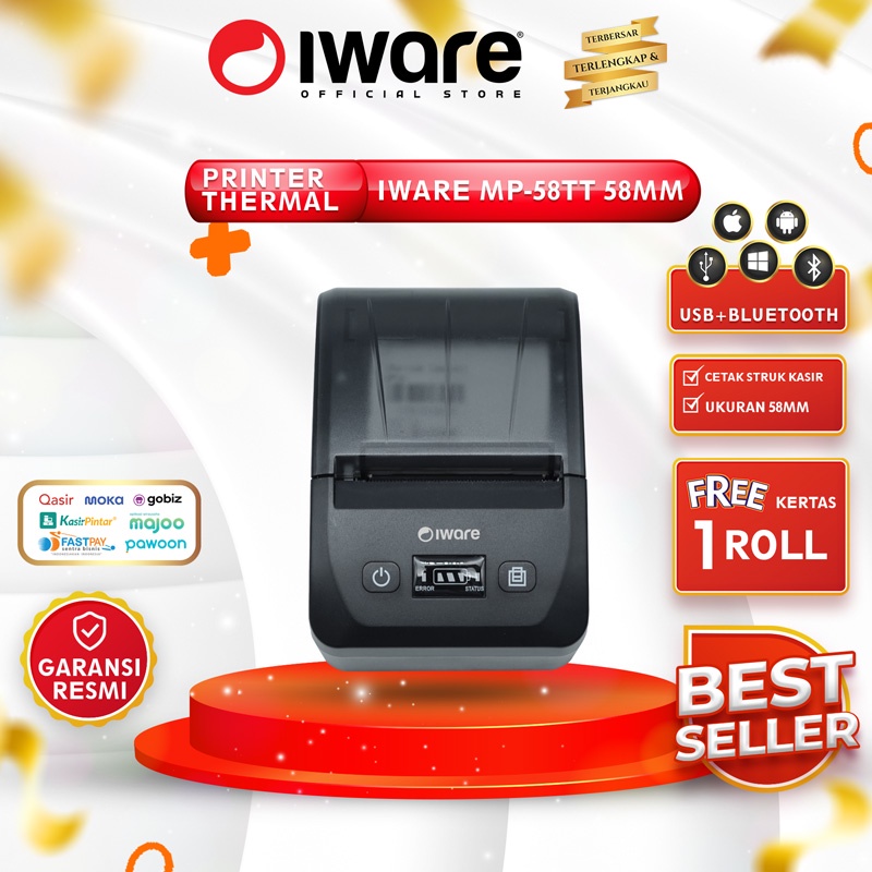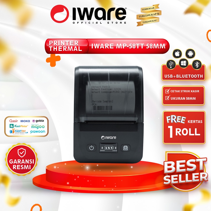 Printer Mini Thermal Iware Mp-58Tt 58Mm Usb+Bluetooth Android Ios Win