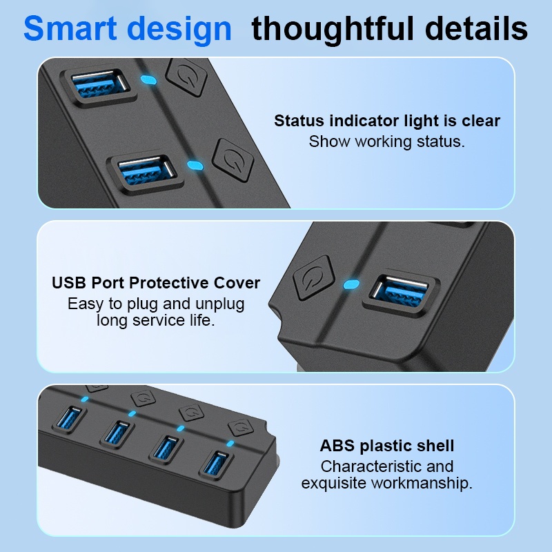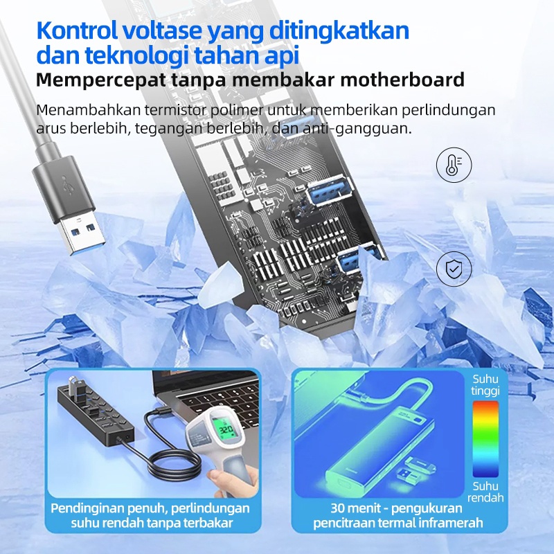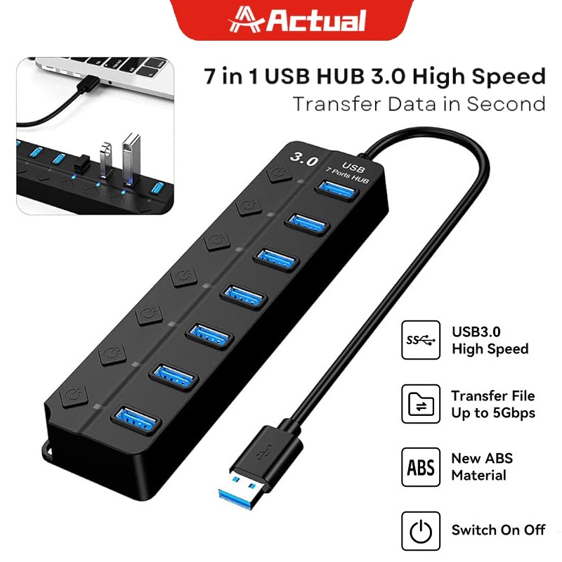 Actual USB Hub 4-in-1/7-in-1 USB 3.0 5Gbps Saklar Independen 1.2M / 30CM Black Aksesoris Desktop & Laptop/Digital de