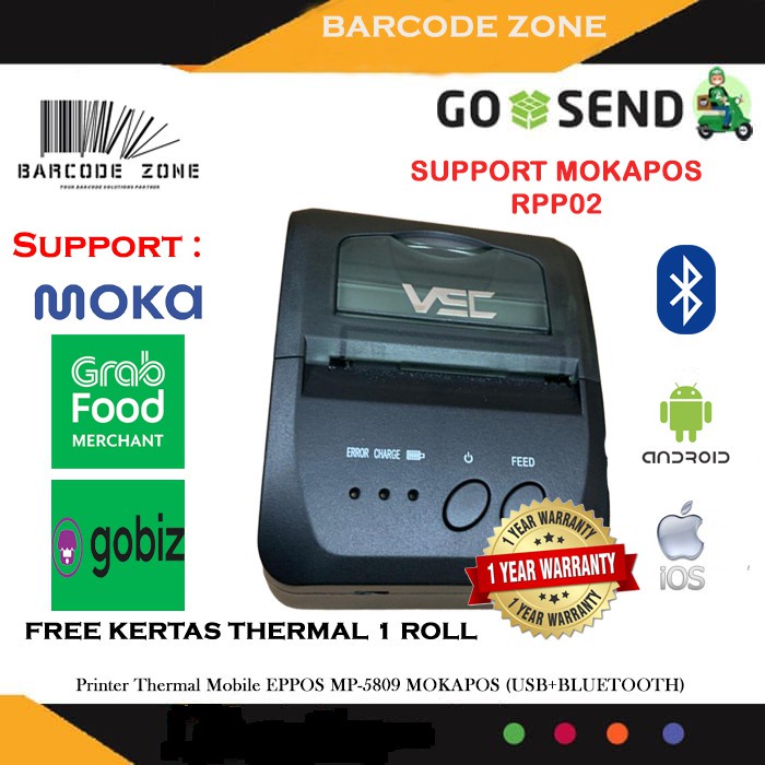 Mini Printer Ppob/Kasir 58Mm Thermal Vsc Mp-5809 (Usb+Bluetooth) Rpp02