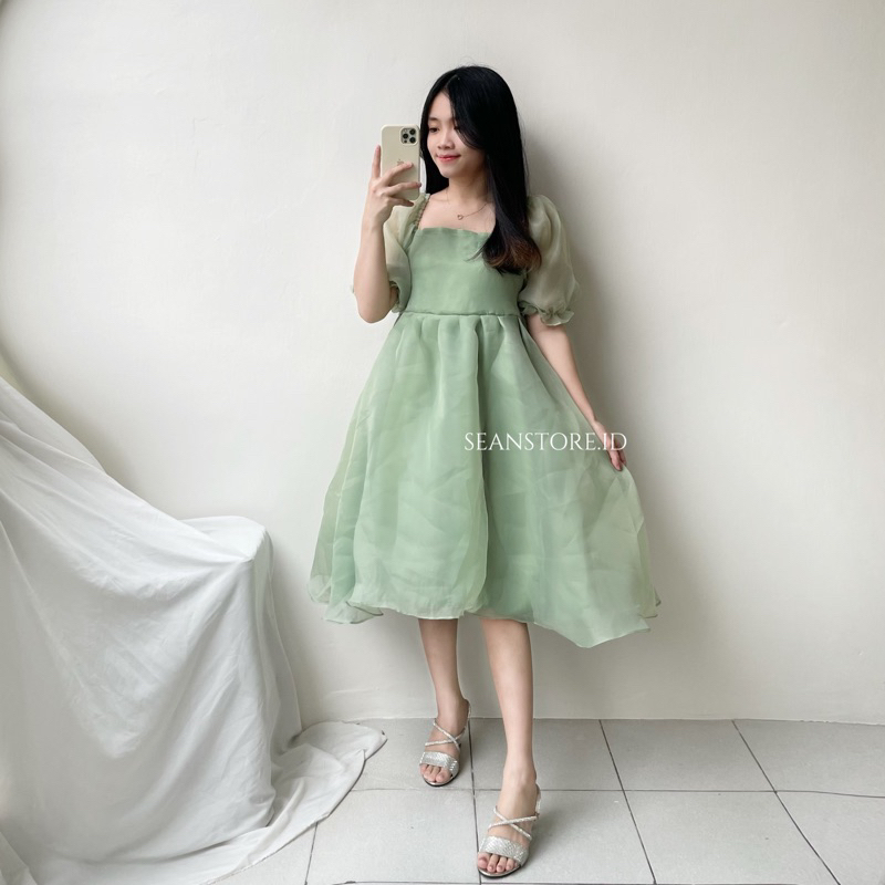 Women Dress Organza Puffy Populer 오간자 Dress Korean Look