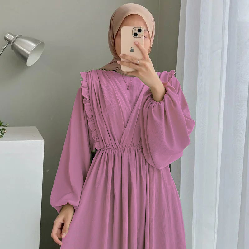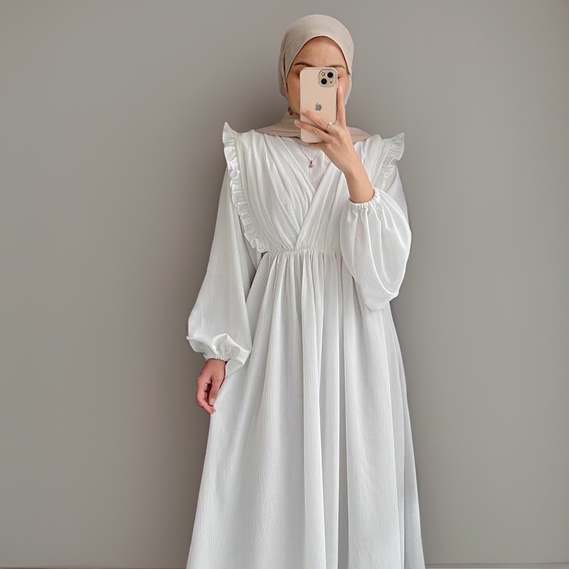 Dress Gamis Putih Simple Elegan Terbaru Korean Style Wanita Kekinian Crinkle Airflow Premium