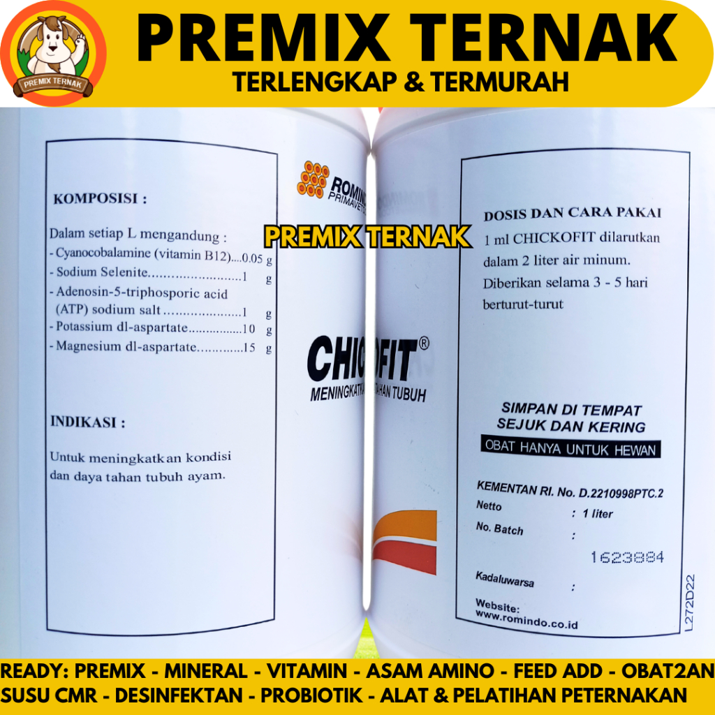 CHICKOFIT 1 LITER - Vitamin Ayam Nafsu Makan Energi Instan & Daya Tahan Stamina Anti Stress Unggas
