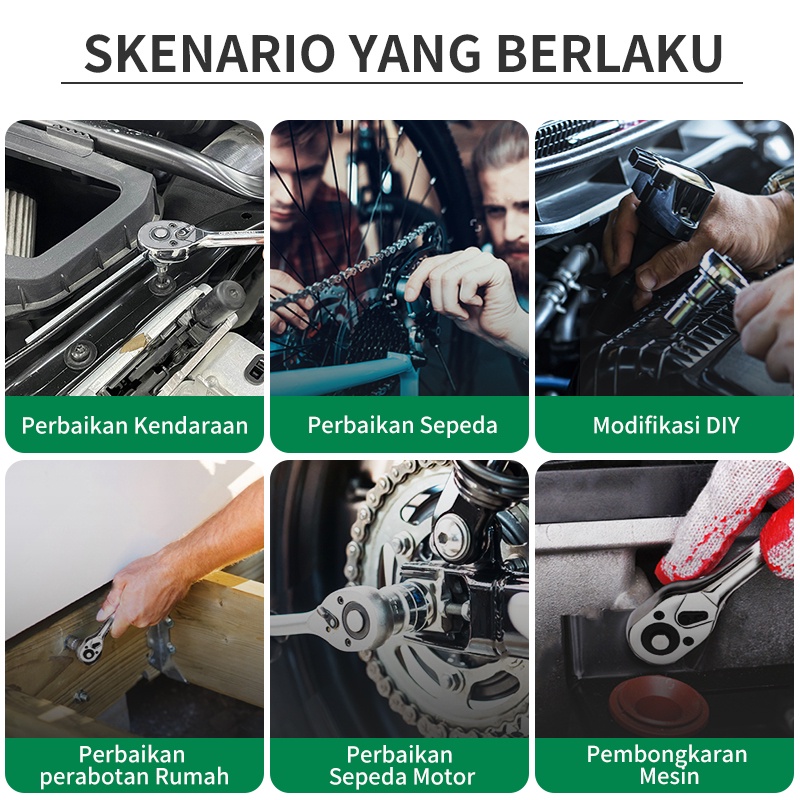 Isku Kunci Shock Set Kunci Mata Sok 53 Pcs Set Socket (1/4 ") Full Tool Kit Alat Perbaikan Mobil Set