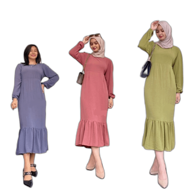Siska Midi Dress Bahan Crinkle Ukuran S M L Xl Xxl Xxxl Dress Type Duyung(Fishtail) Terbaru 2025