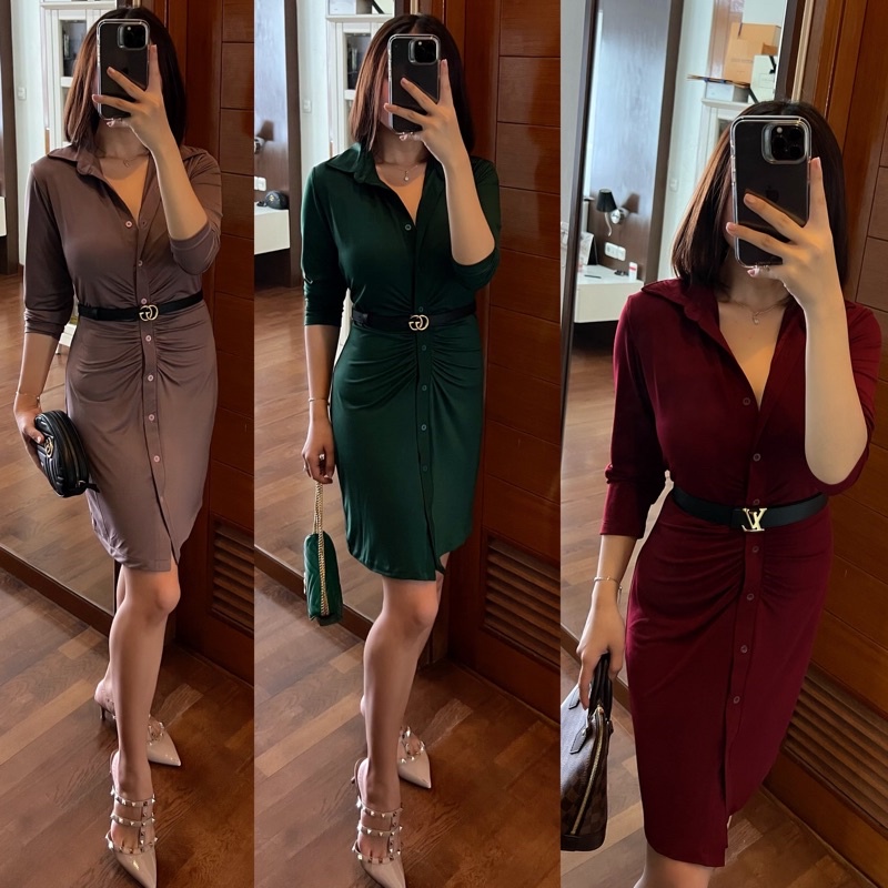 Dress Long Sleeve Baju Dress Kerut Tangan Panjang Korean Dress