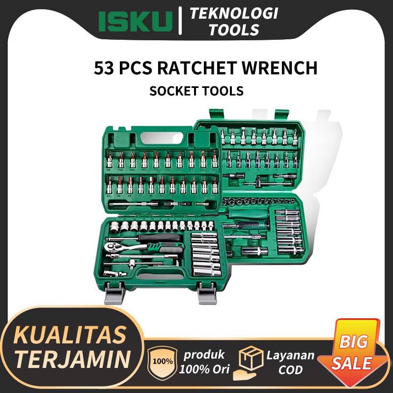 Isku Kunci Shock Set 53 Pcs Kunci Mata Sok Set Socket 24Gigi/72Gigi Full Lengkap Socket Toolkit Mata Sok