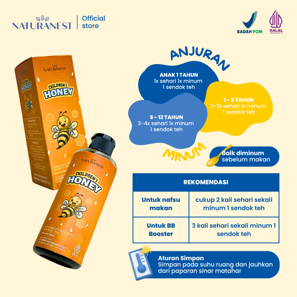 Naturanest Childrens Honey 200Gr - Madu Multivitamin Penambah Nafsu Makan Anak Paket 1 Botol