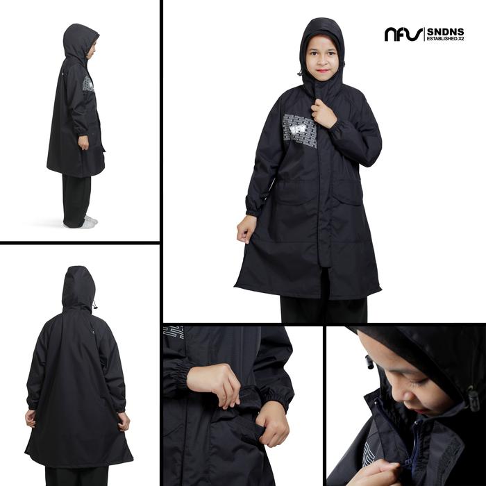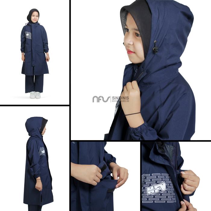 JAS HUJAN ANAK PEREMPUAN HIJAB TUNIK BAHAN POLYESTER IMPORT - BIRU MUDA POLYESTER COATING BALON, 4 TAHUN