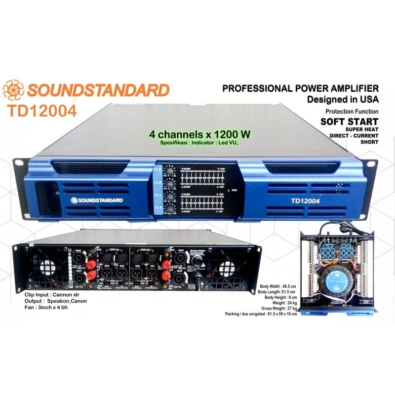 POWER AMPLIFIER SOUNDSTANDARD TD12004 TD 12004 4CH 4X1200 WATT 4 KIPAS