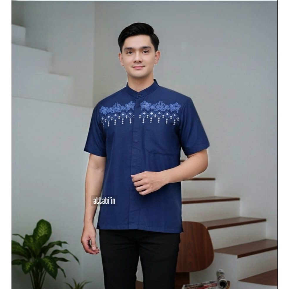 Attabiin Baju Koko Pria Dewasa Bordir – Koko Lengan Pendek Katun Premium Terbaru