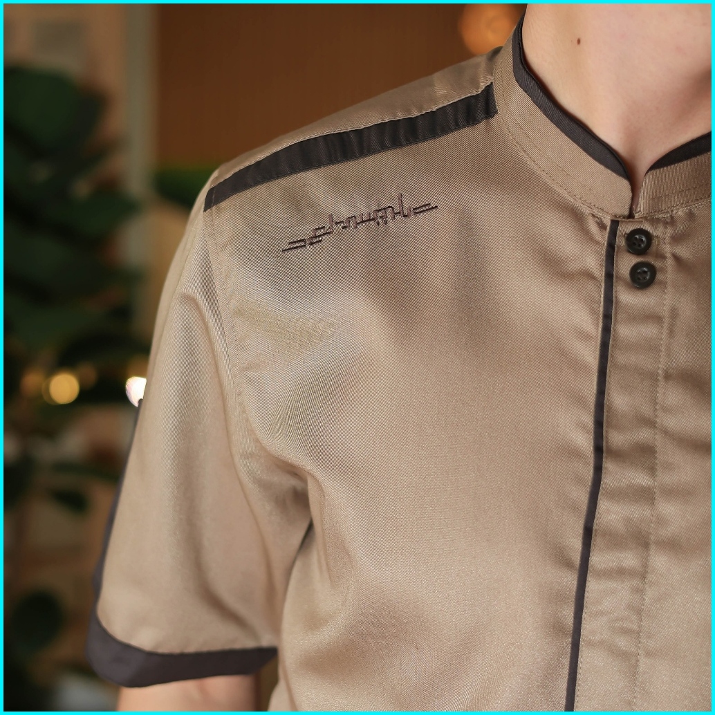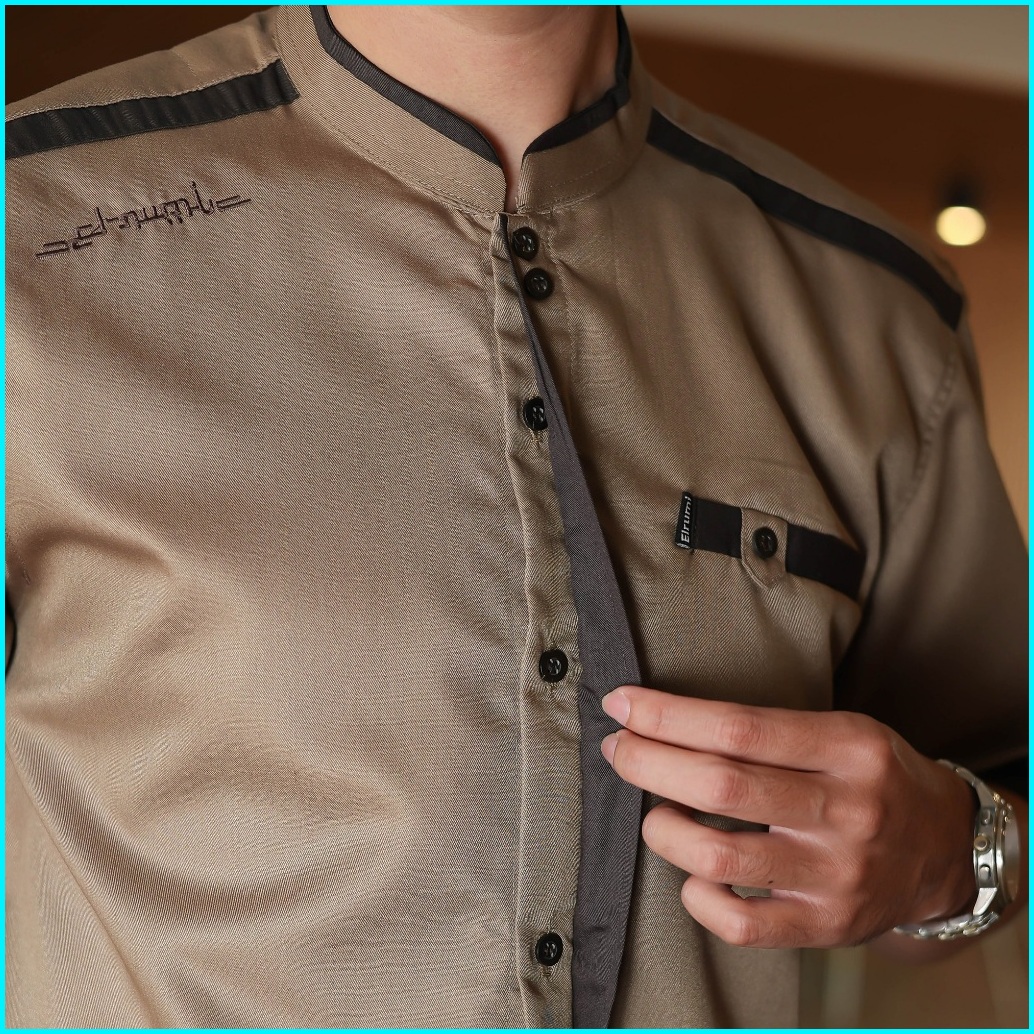 Baju Koko Pria Elrumi Lengan Pendek Motif Yisunsin Warna Cokelat