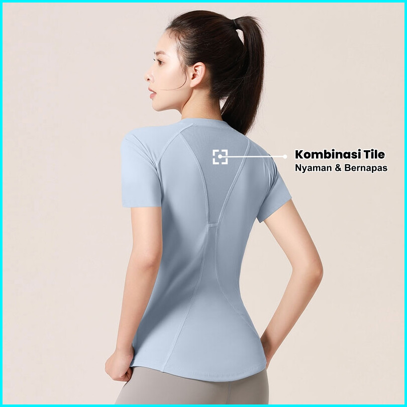 Youmi Baju Olahraga Wanita Yoga Gym T-shirt Lengan Pendek Tile V Ym079