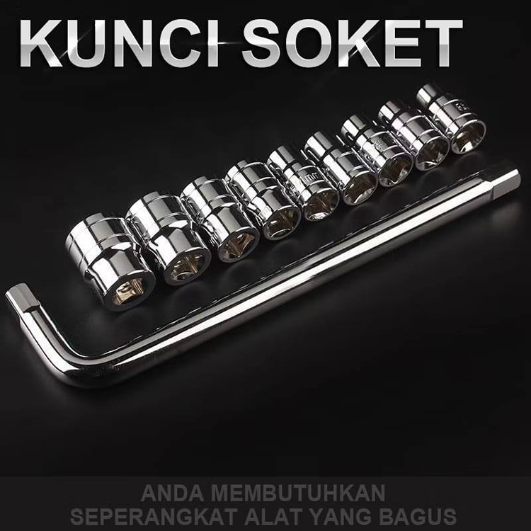 Kunci Socket Wrench Set 10 Pcs Mata Sock Shock-Kunci Socket 10 pcs Sok Obeng Alat Bengkel Set