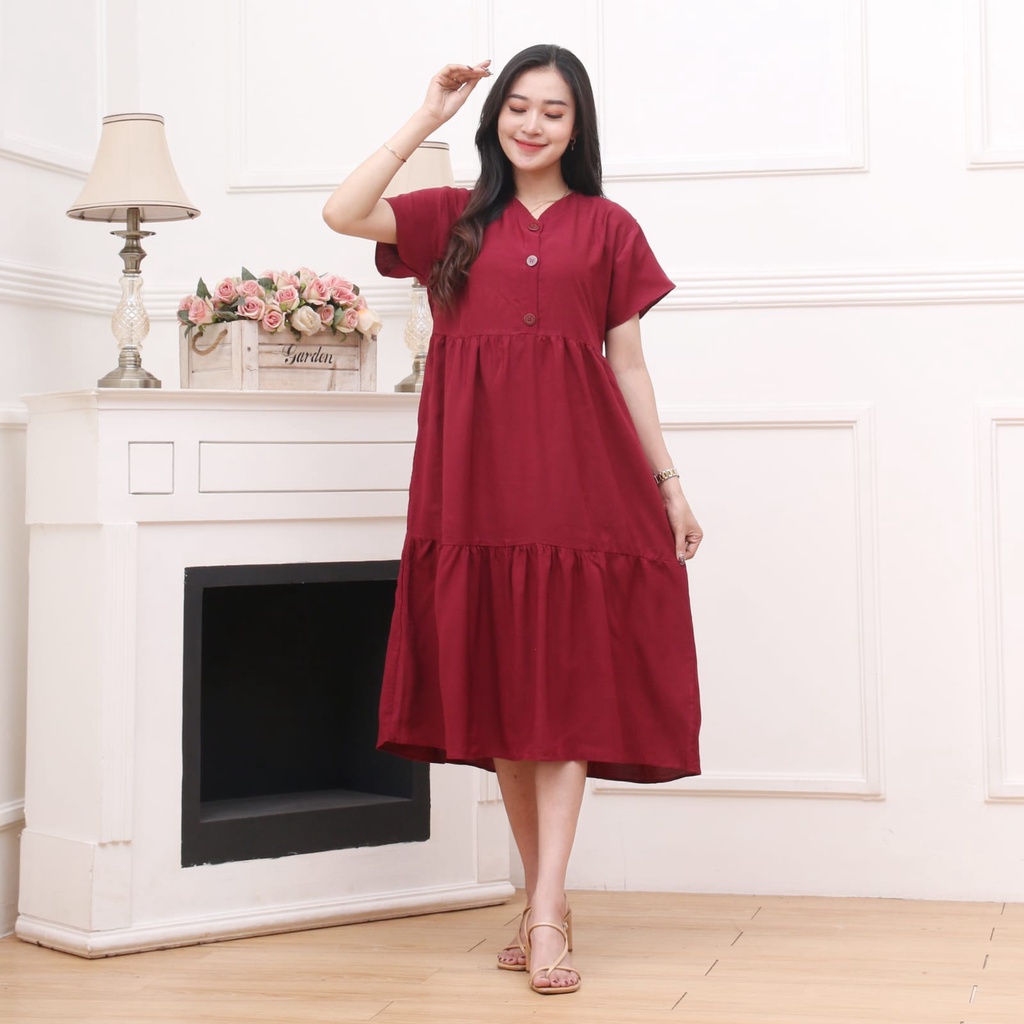 Achsa Dress Home Dress Rayon Polos Casual Dress Korean Style