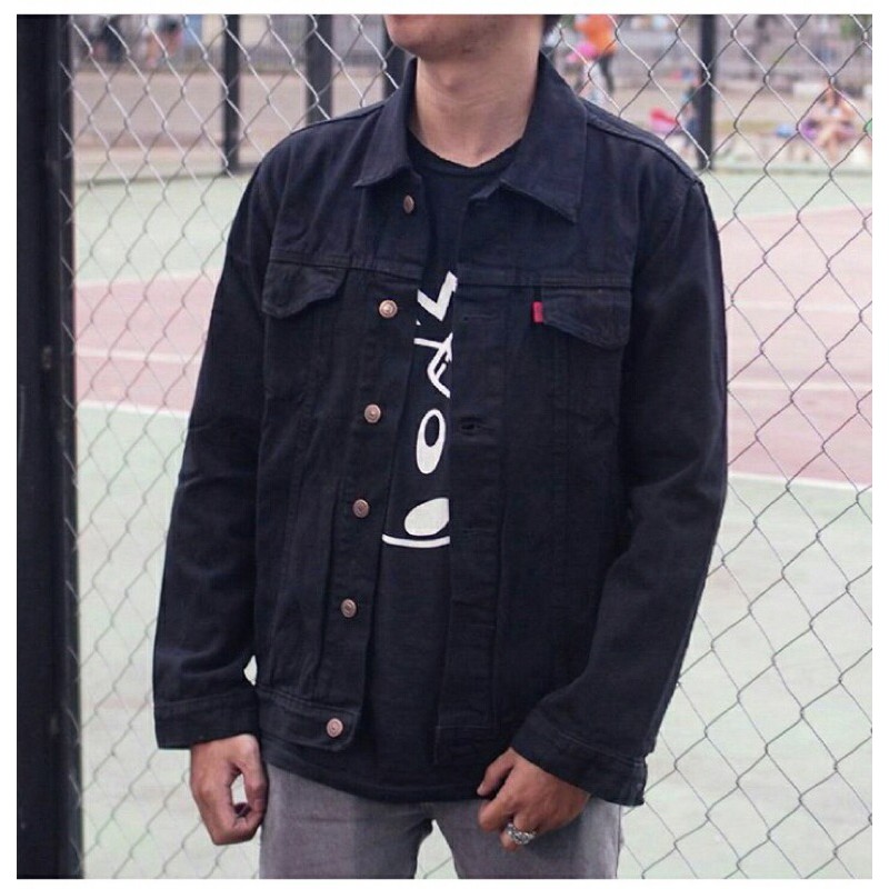 Jaket Jeans Oversize Bio Blitz Bio Wash Blue Black Hitam Bio Blue Bio Pudar