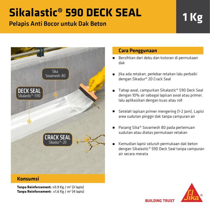 DECK SEAL SIKALASTIC 590 WATERPROOFING ANTI BOCOR DAK BETON ATAP 1KG