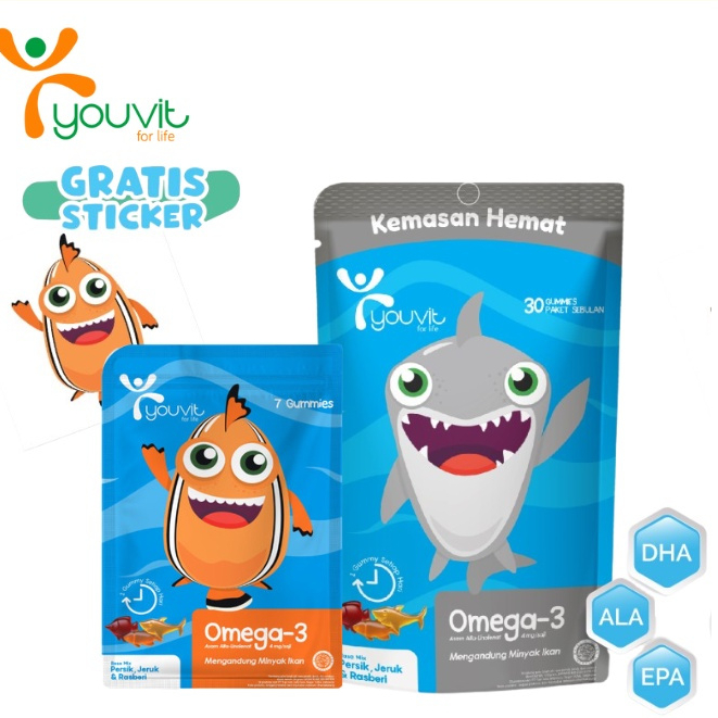 Youvit Omega 3 Anak Isi 7 & 30 Gummies With Dha, Epa Dan Ala Multivitamin Kecerdasan Anak Whs