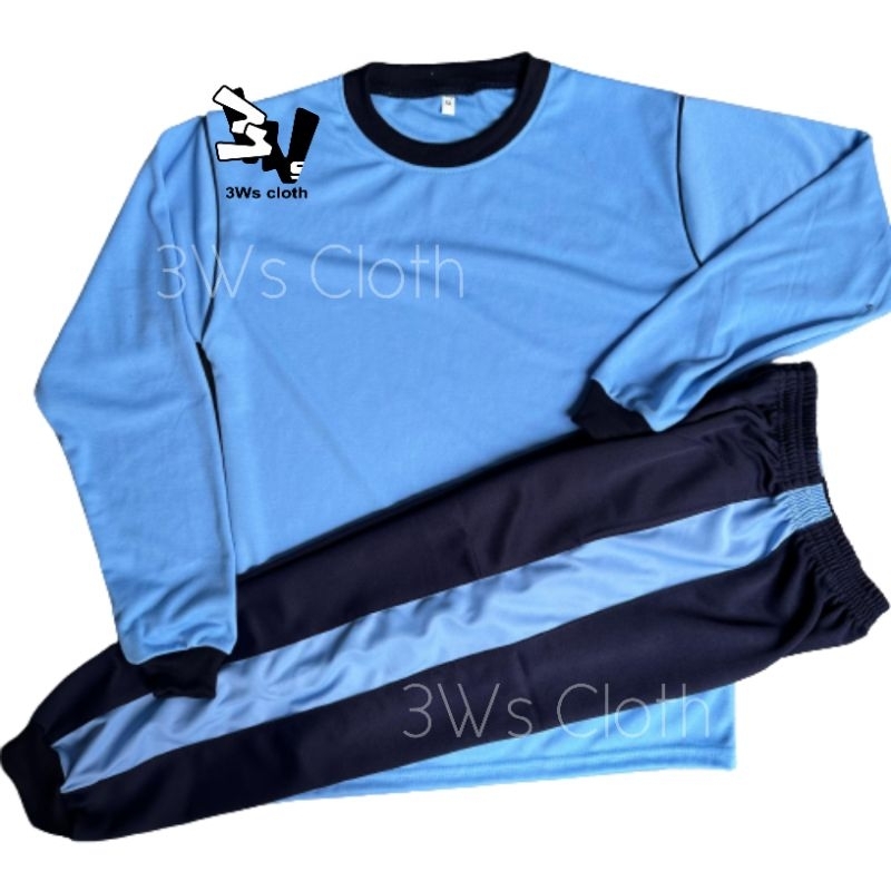 SET. BIRUMU NAVY, CELANA DONGKER STRIP, KAOSSAJA BIRU MUDA