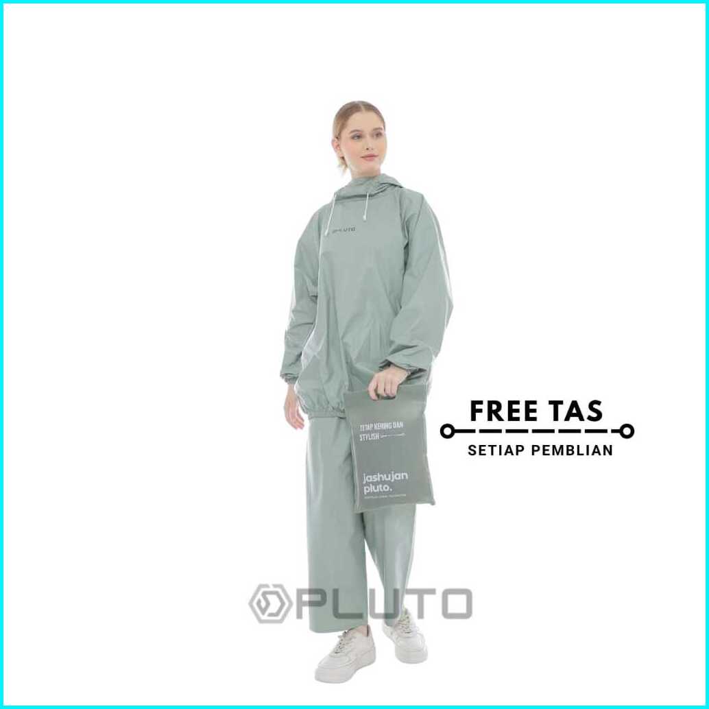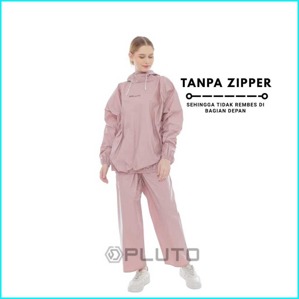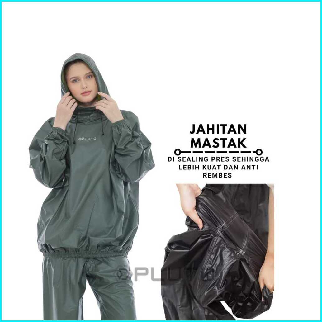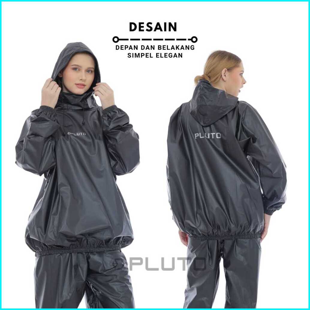 Pluto Jas Hujan Hoodie Anti Rembes Bahan Pvc Tebal Elastis Setalan Pria Wanita