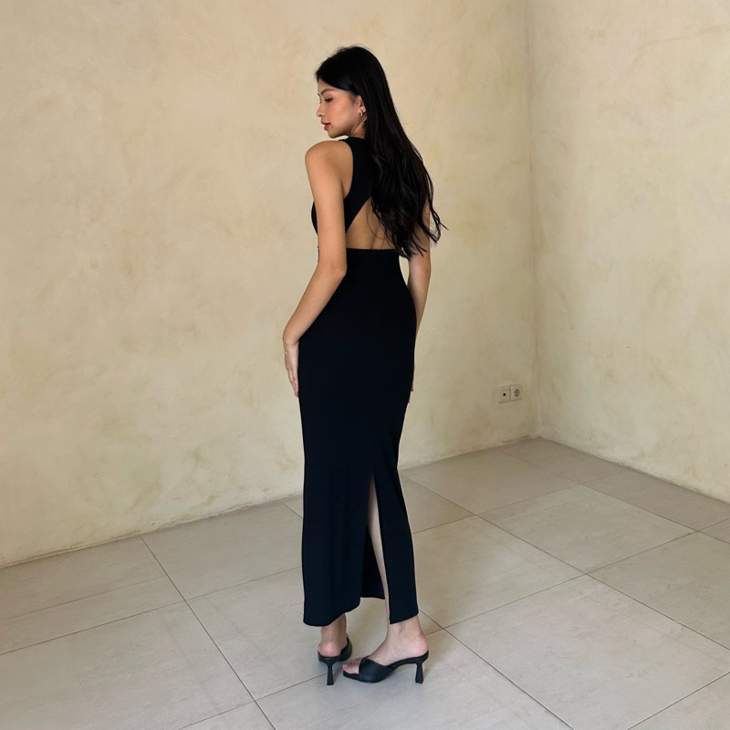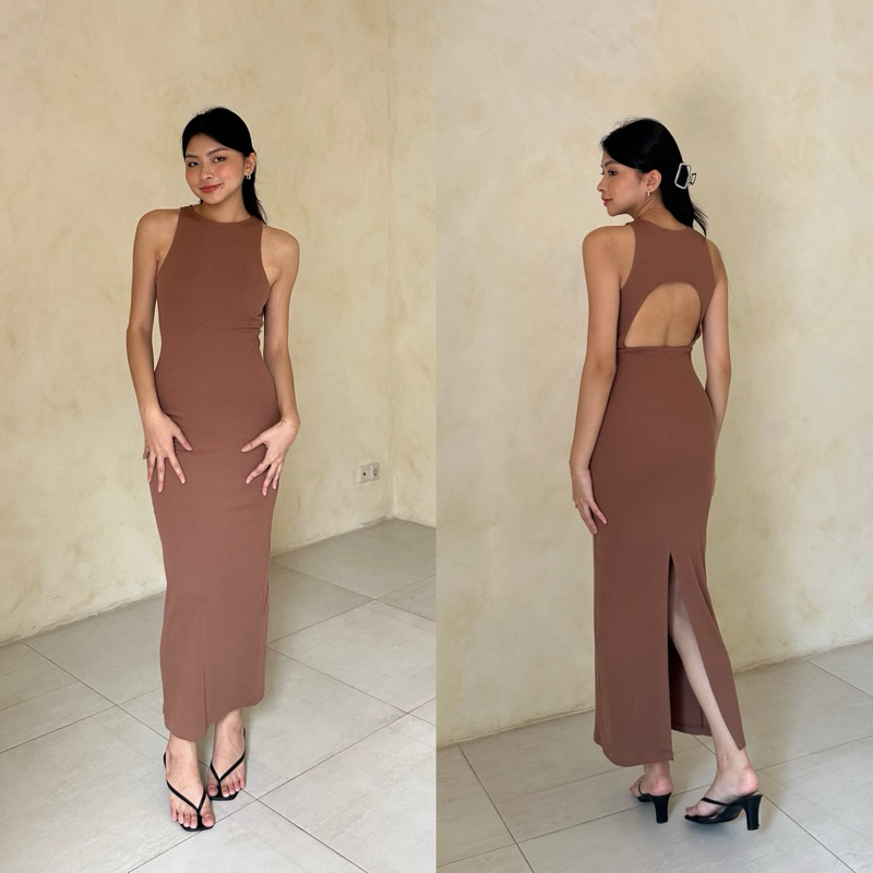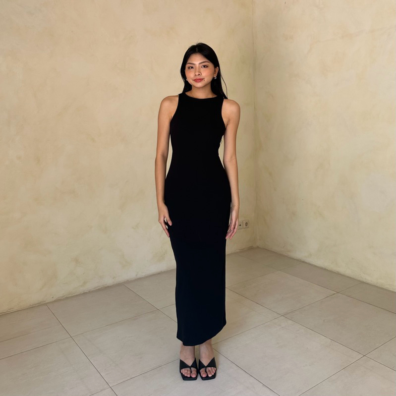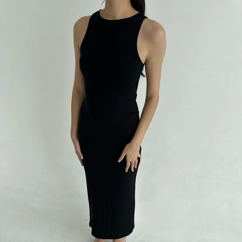 Daphne Dress | Rooha | Dress Panjang Wanita Ribbed Knit Terusan Tanktop Tanpa Lengan Backless Racer Tank Korean Maxi Dre
