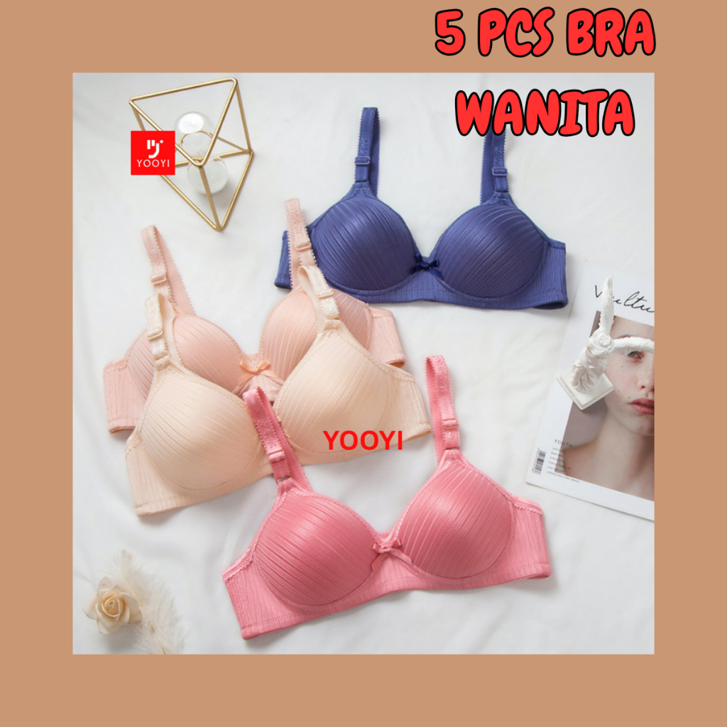 Yooyi ISI 5 PCS Bh Big Size Perempuan Tanpa Kawat Bra Wanita Jumbo 36-44 Ukuran Besar Fashion y Cup 3/4B 029