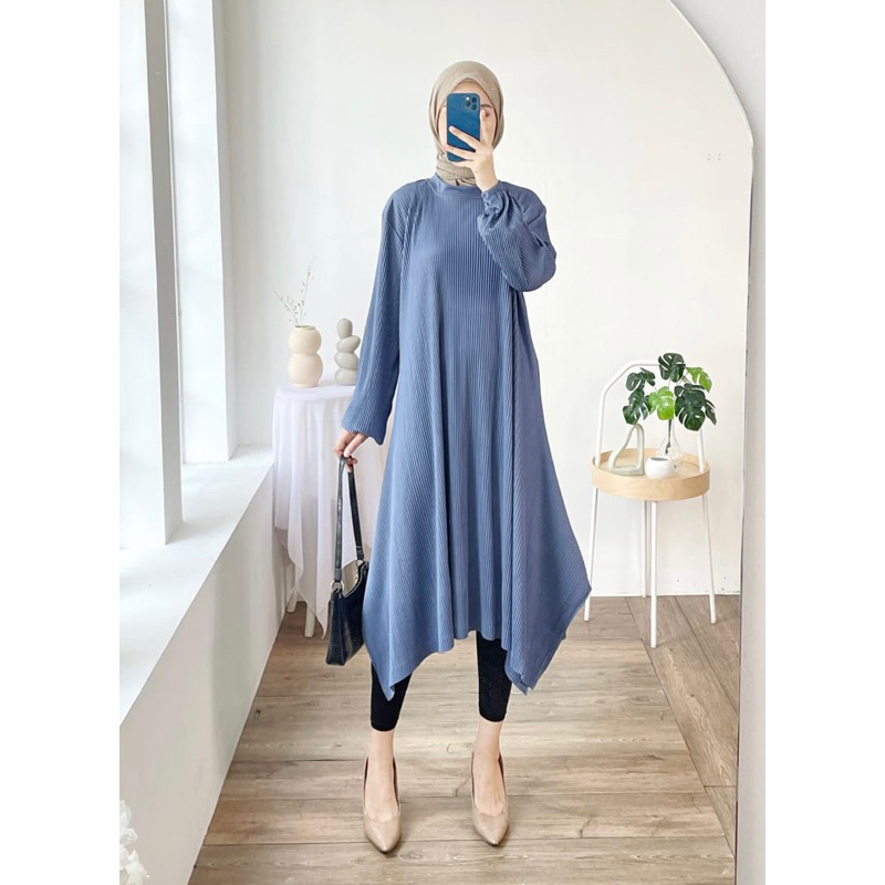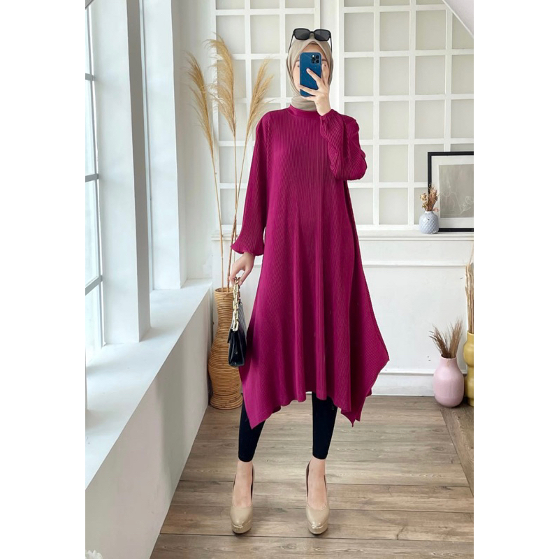 Dress Plisket Tunik Halus Jumbo Ss Ootd Viral Muslimah Dress Tunik Hyget Murah Grosir Modellano