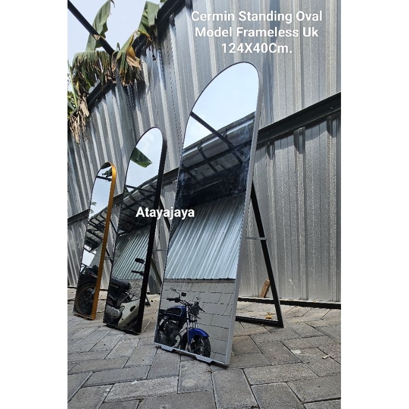 Cermin Standing Oval Full Body Model Frameless Ukuran 124X40Cm "Harga Sudah Termasuk Gratis Packing Kayu"