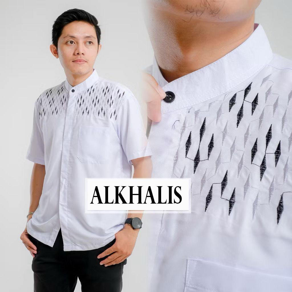 Alkhalis Baju koko Lengan pendek Bordir batik Moot size M L XL XXL XXL