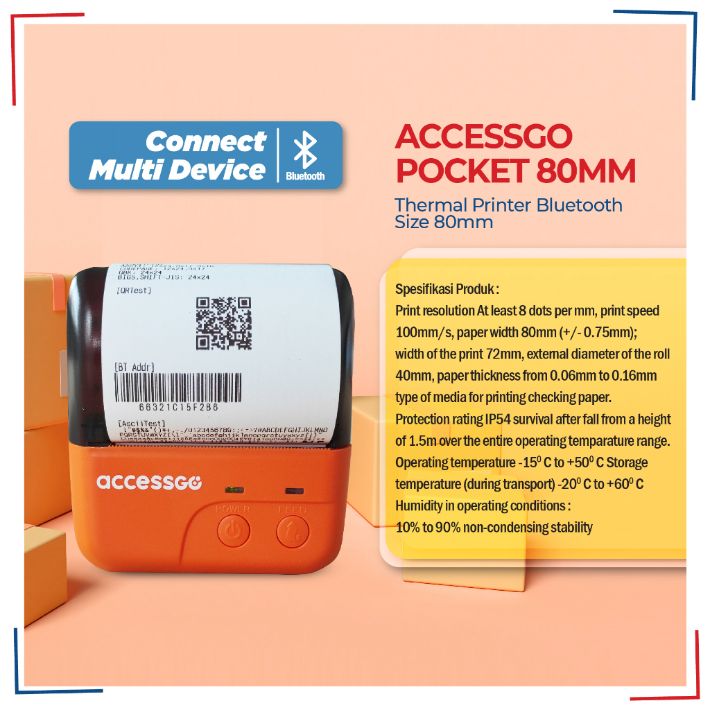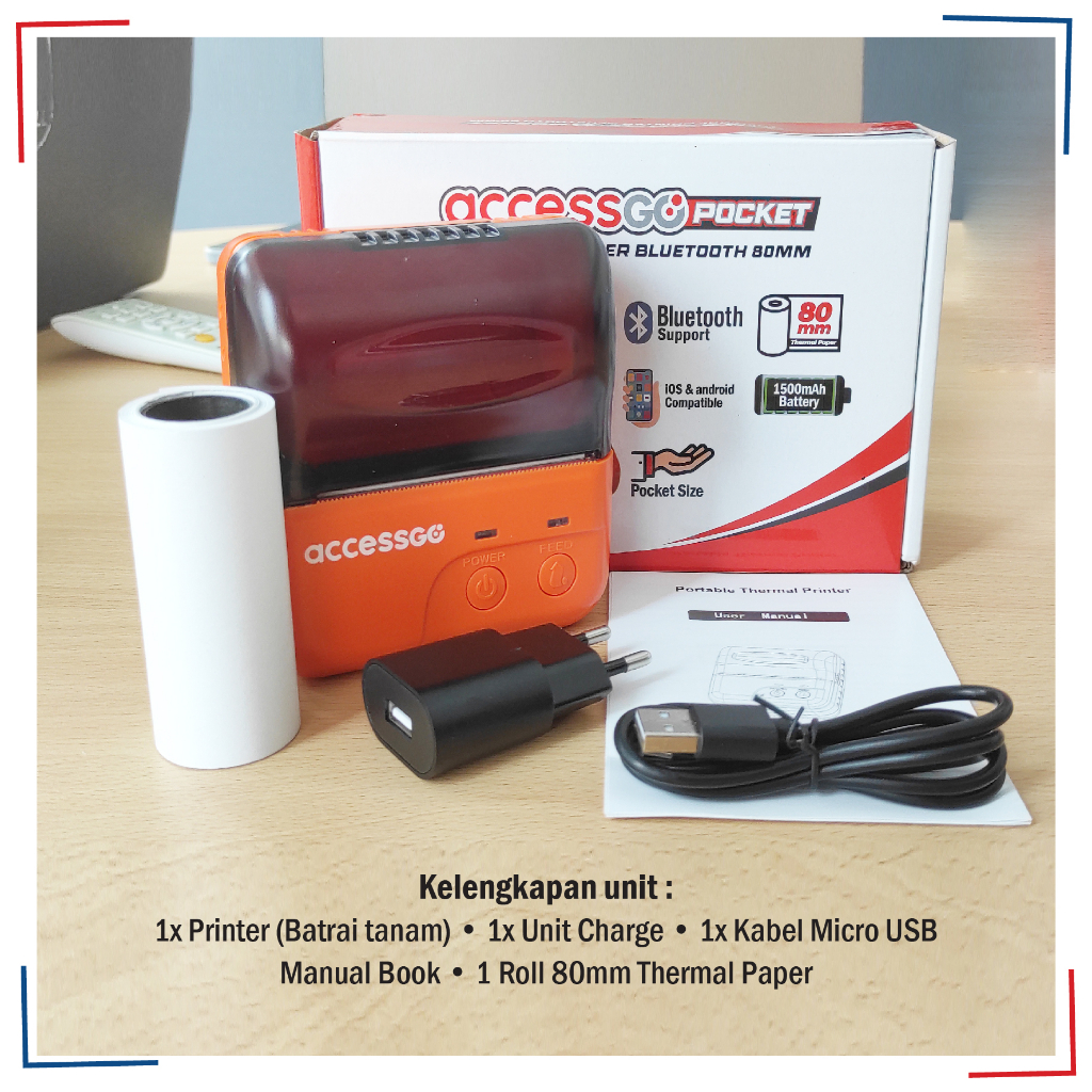 Accessgo Pocket 80Mm Mini Printer Thermal Bluetooth