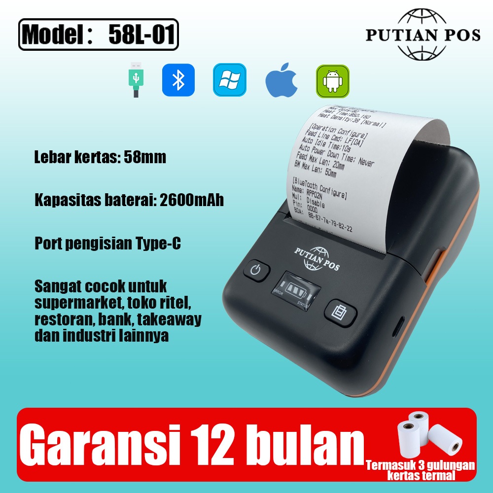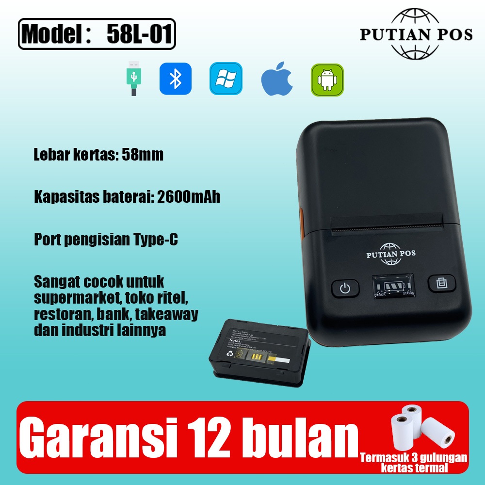 Lantian Pos Printer Mini Portabel Bluetooth 58Mm (Jarak Label Tagihan) Printer 2 Dalam 1