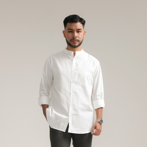 Broodis Kemeja Koko Pria Shanghai Polos Oxford Putih COZY Series Cotton White Lengan Panjang