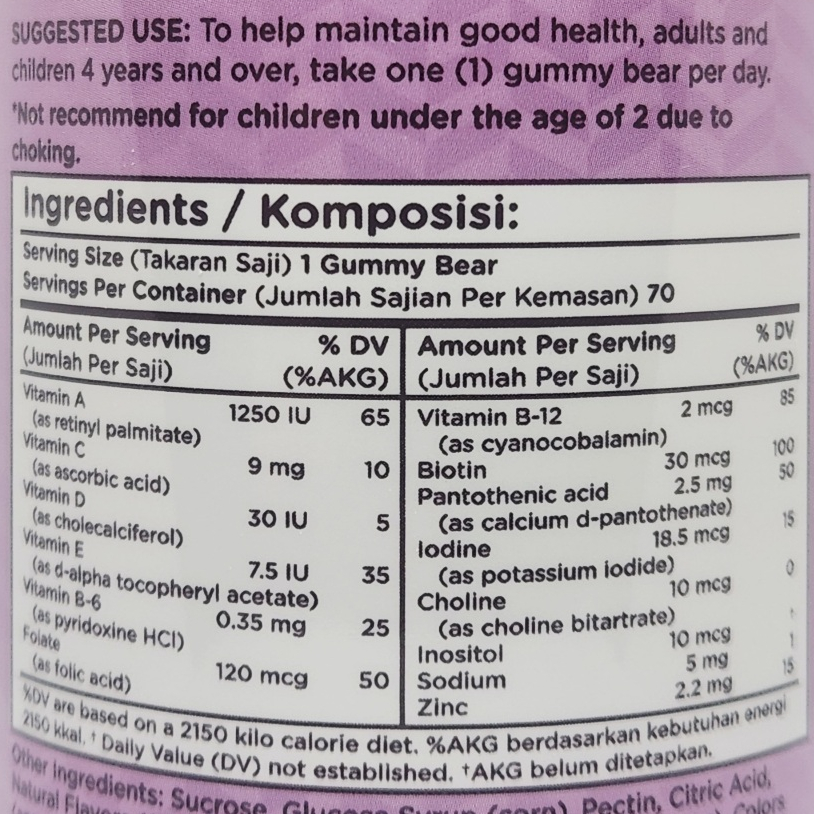 Wellness Gummy Kids Multivitamin (70 Gummy Bears) - Multivitamin Anak