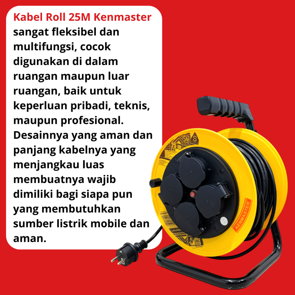 Kenmaster Kabel ROLL 25 Meter ( SNI ) Box Kabel Colokan Listrik Stop Kontak 4 Lubang Kabel Terminal Gulungan