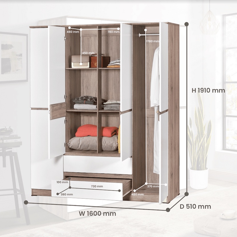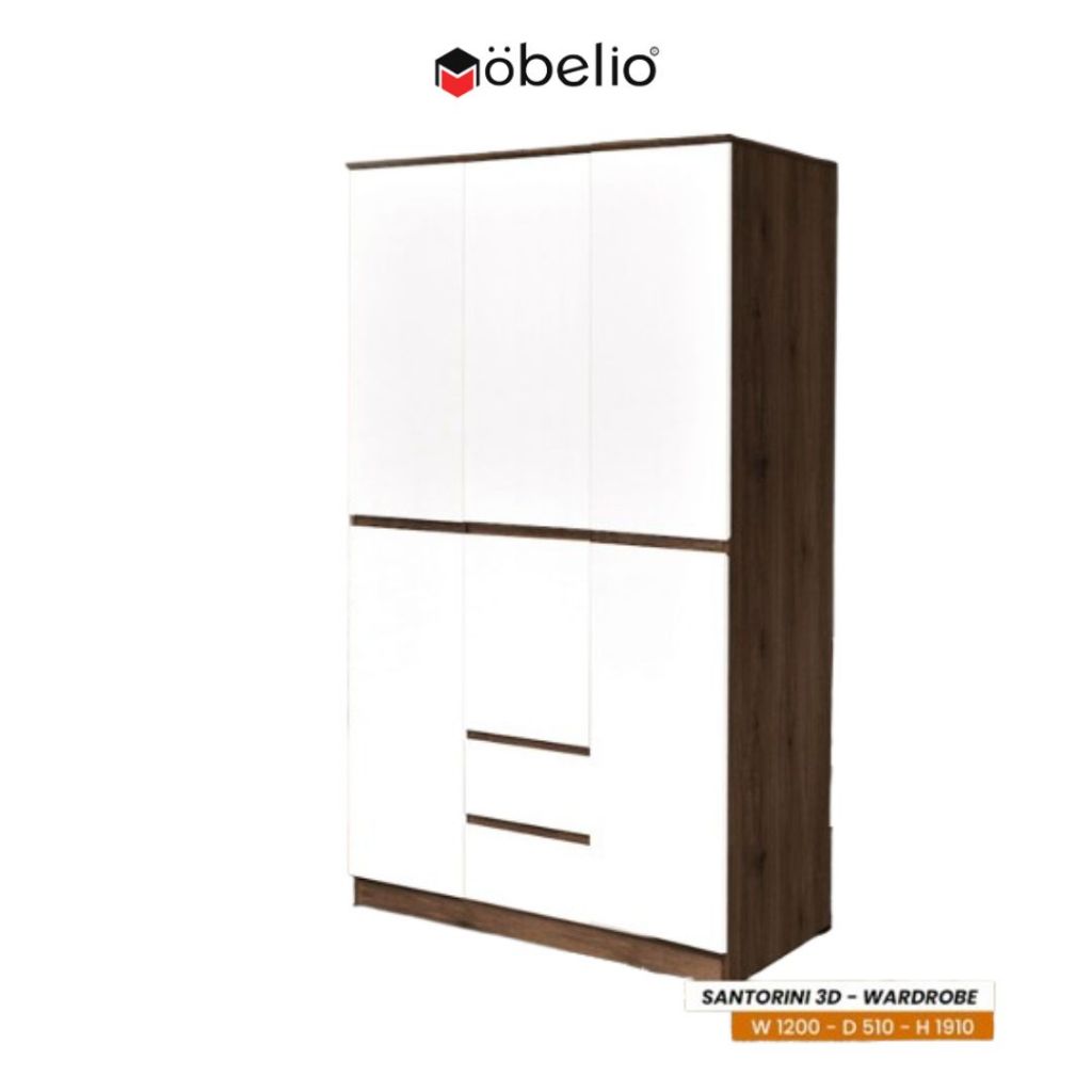 Mobelio - Lemari Pakaian 3 Dan 4 Pintu Minimalis Japandi Laci Coklat Putih - Santorini