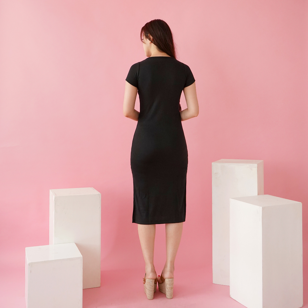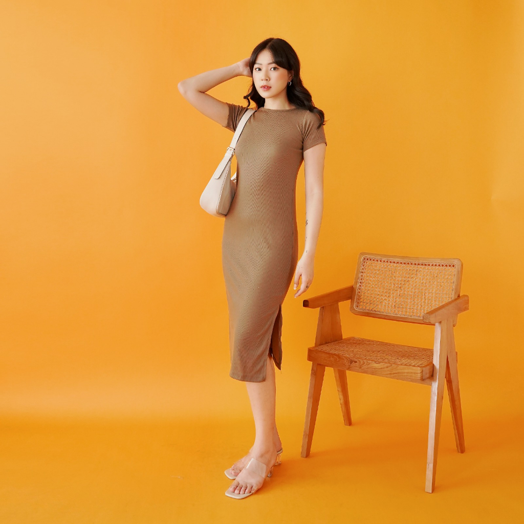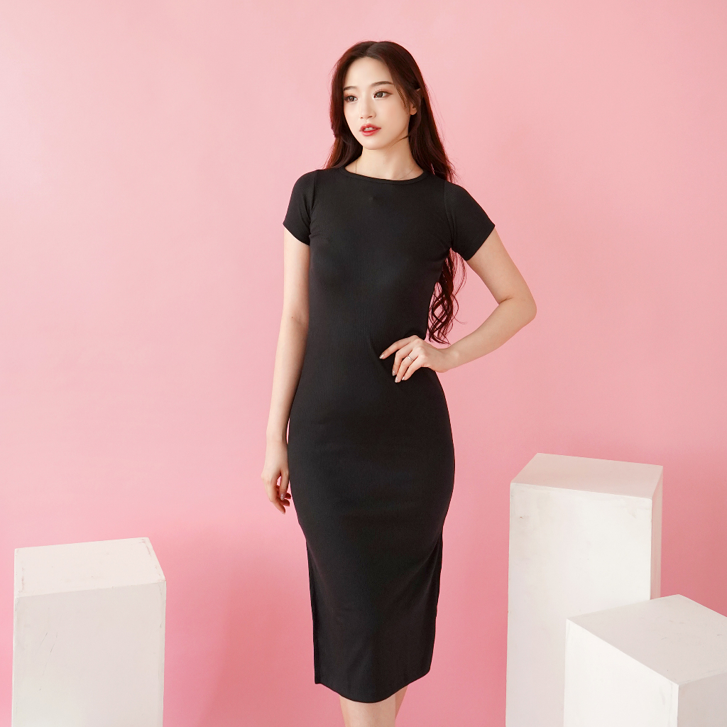 Oroy Dress Knit Rib Korean Dress Wanita Polos Or0990