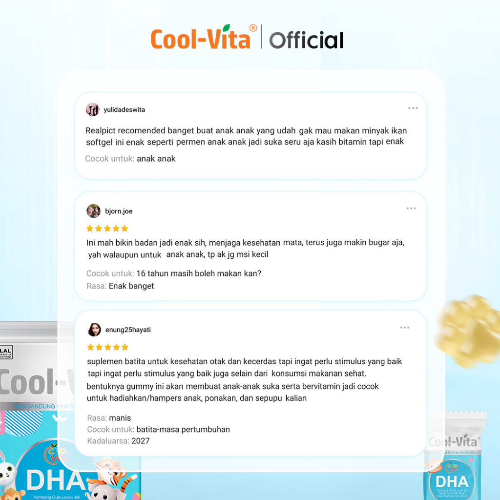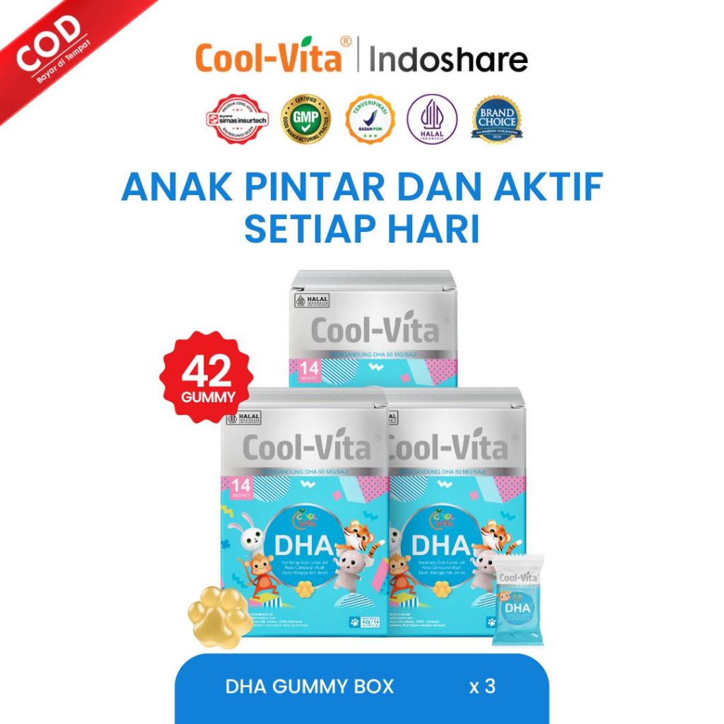 Coolvita 3 Box Dha Gummy - Suplemen Vitamin Anak Dengan Minyak Alga Dha 50Mg Omega 3 Alternatif Minyak Ikan Untuk Keseha