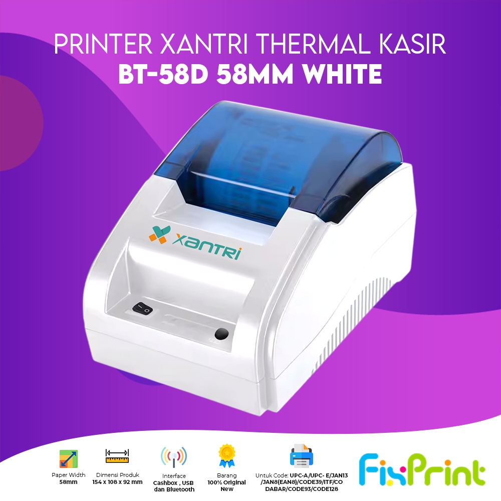 Fixprint Printer Kasir Iware Thermal Xantri Bt-58D Black / White Usb Bluetooth 58Mm - C58Bt Xp58Iiz C-58Mpc V2 Mini Kasi